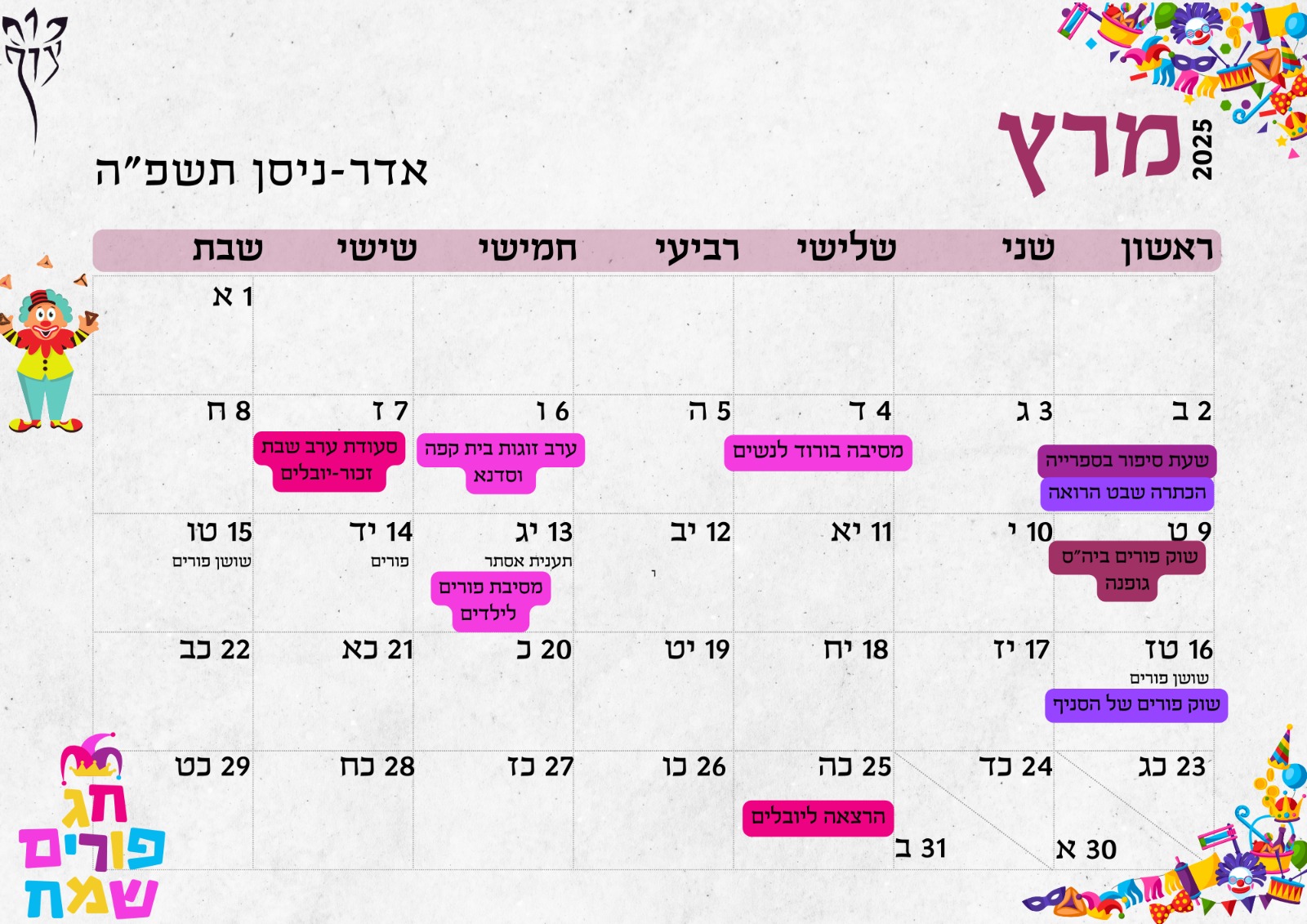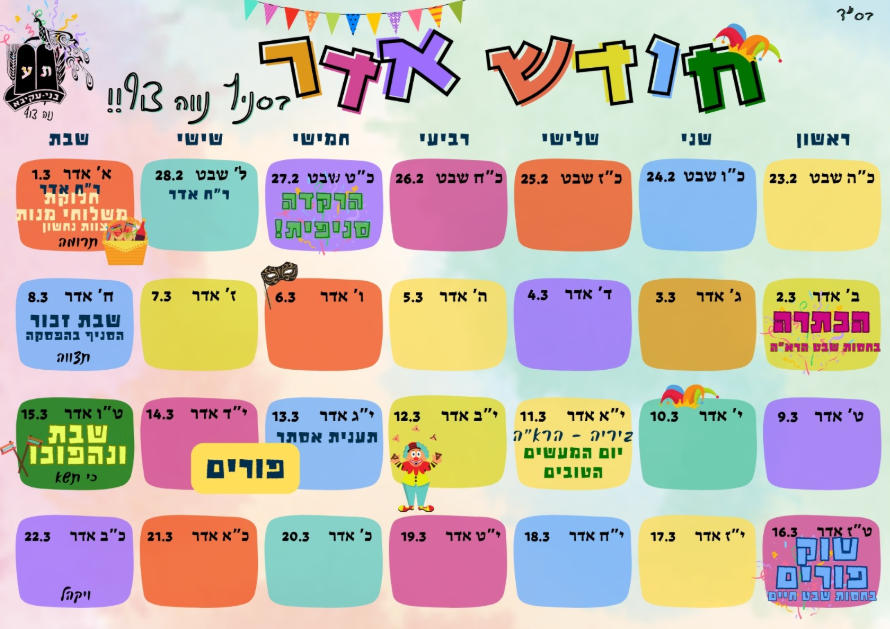 בסוף המידעצוף- מצורף לו״ז חודש אדר עם תאריכים לפעילויות הכי שוות! שווה לשריין ביומן