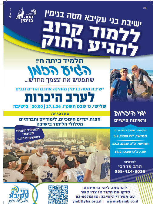 יום שלישי ט' בשבט תשפ"ו 6.1.26-