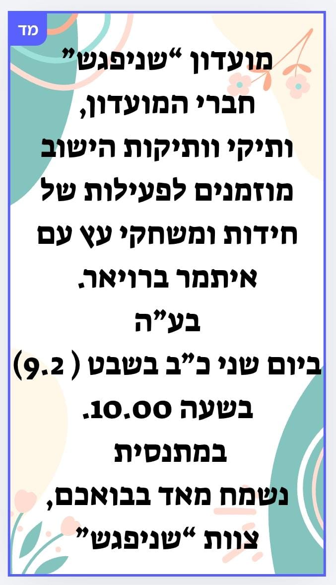 עדכונים ממועדון "שניפגש":