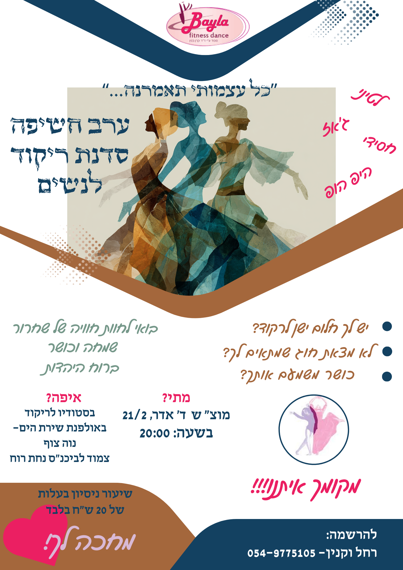 אבל הכי אני אוהב לחזור הביתה- מסיבת נשים מטורפת לכבוד ר'ח אדר,🎀ארוחת ערב בשרית,🎀דברי תורה,🎀מופע סטנד אפ של נשות הישוב,🎀מסיבת ריקודים מופלאה/מרחב נשי לשיחה. עלות 80 שח בלבד. מצפות לראות את כולן 🎀להרשמה לחצו כאן!