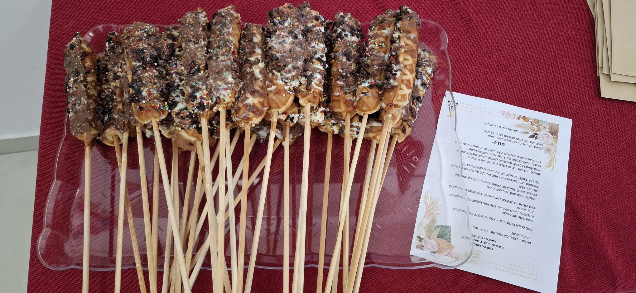 • השבוע ביום רביעי התקיים יום המורה. חילקנו במוסדות החינוך השונים של היישוב וופל בלגי עם ברכה. תודה למזכירות היישוב ולוועדת חינוך על שדאגו לכך.