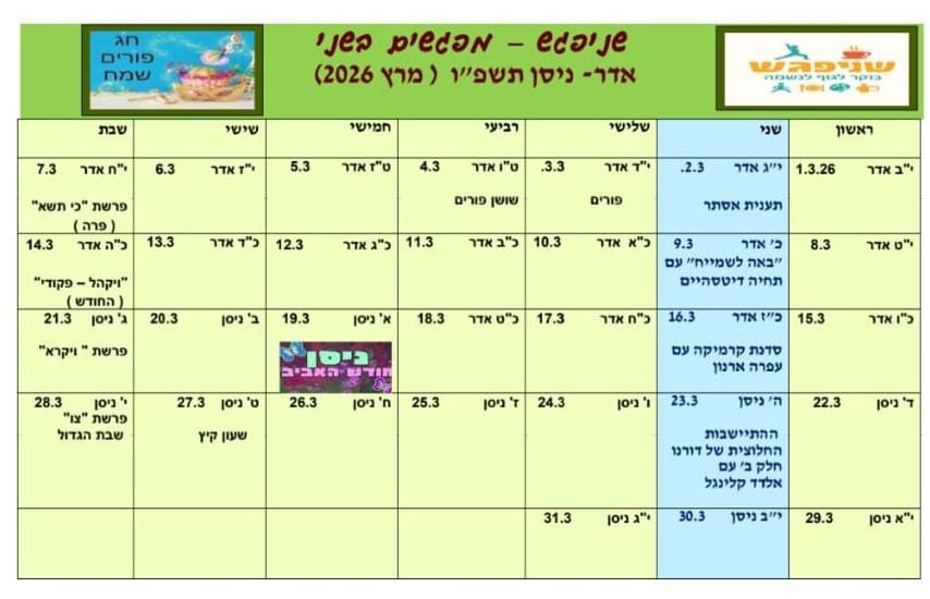 בסוף המידעצוף מצורפת תכנית הפעילויות לחודש מרץ.