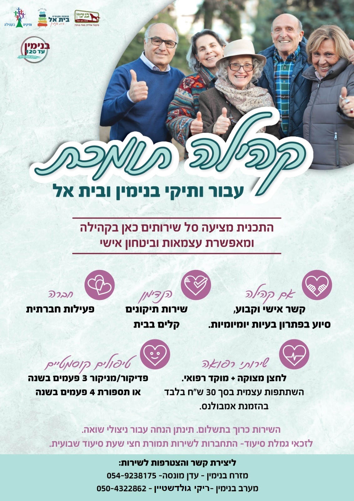 ותיקים: אנחנו רואים חשיבות בשמירה על מרקם החיים ואיכות החיים שלכם בוני היישוב, גם בתוך ההתפתחות והגדילה של היישוב, נהיה קשובים לצרכים ונפעל לחיזוק הפעילות המבורכת הקיימת ביישוב.