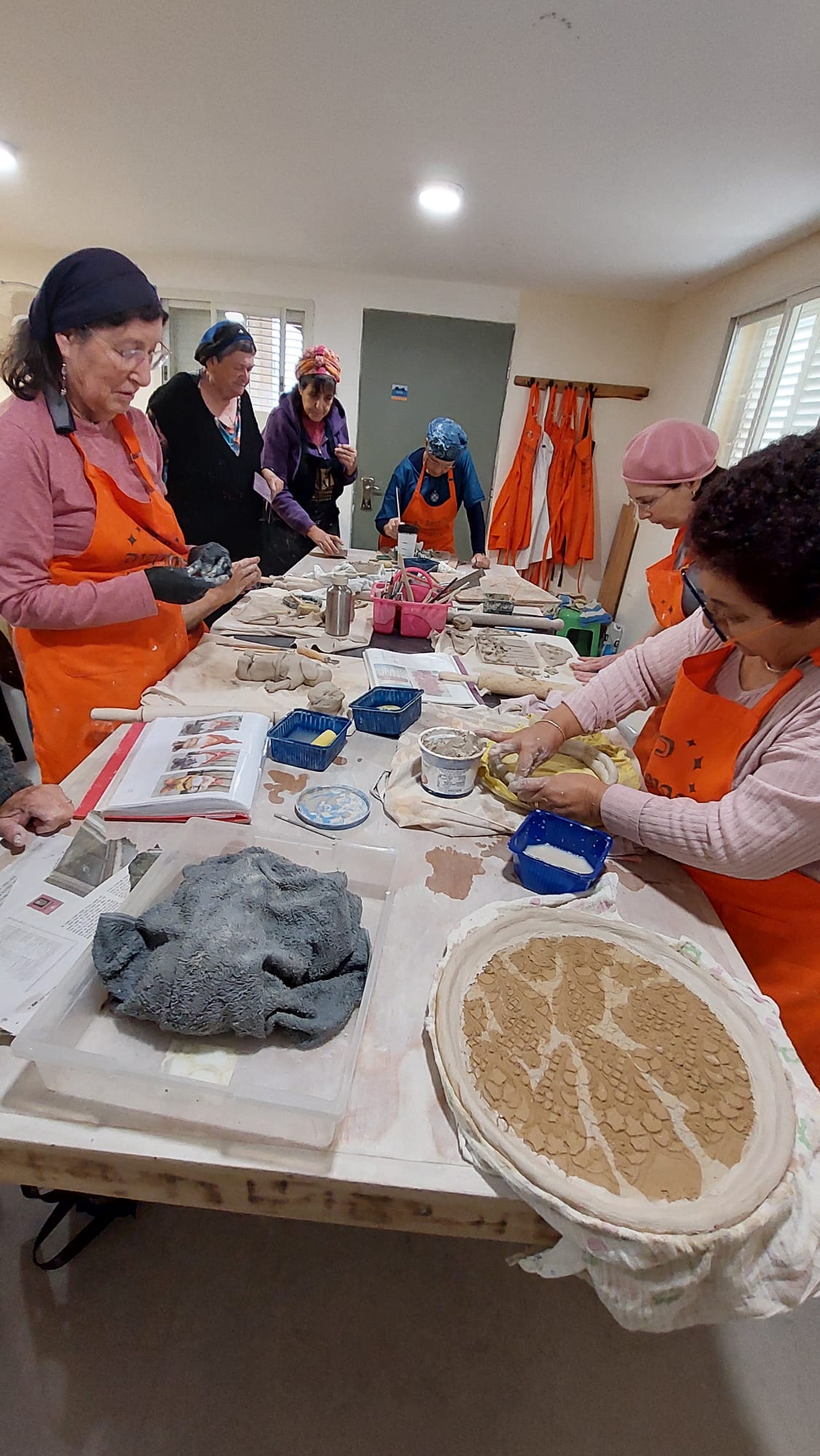 נפגשנו ביום שני כ"ז באדר ( 16.3). מאחר ועקב המצב אין אפשרות לקיים את המפגשים במתנסית קיימנו את אימון הפילאטיס במקלט של ביה"ס. תודה למנהל ביה"ס שנתן את אישורו לכך, למרות שביום זה התחדשו הלימודים. נאלצנו לדלג על ארוחת הבוקר ושיחה על פרשת השבוע. בשעה 10.00 הגענו לסטודיו של עפרה ארנון לסדנת קרמיקה.