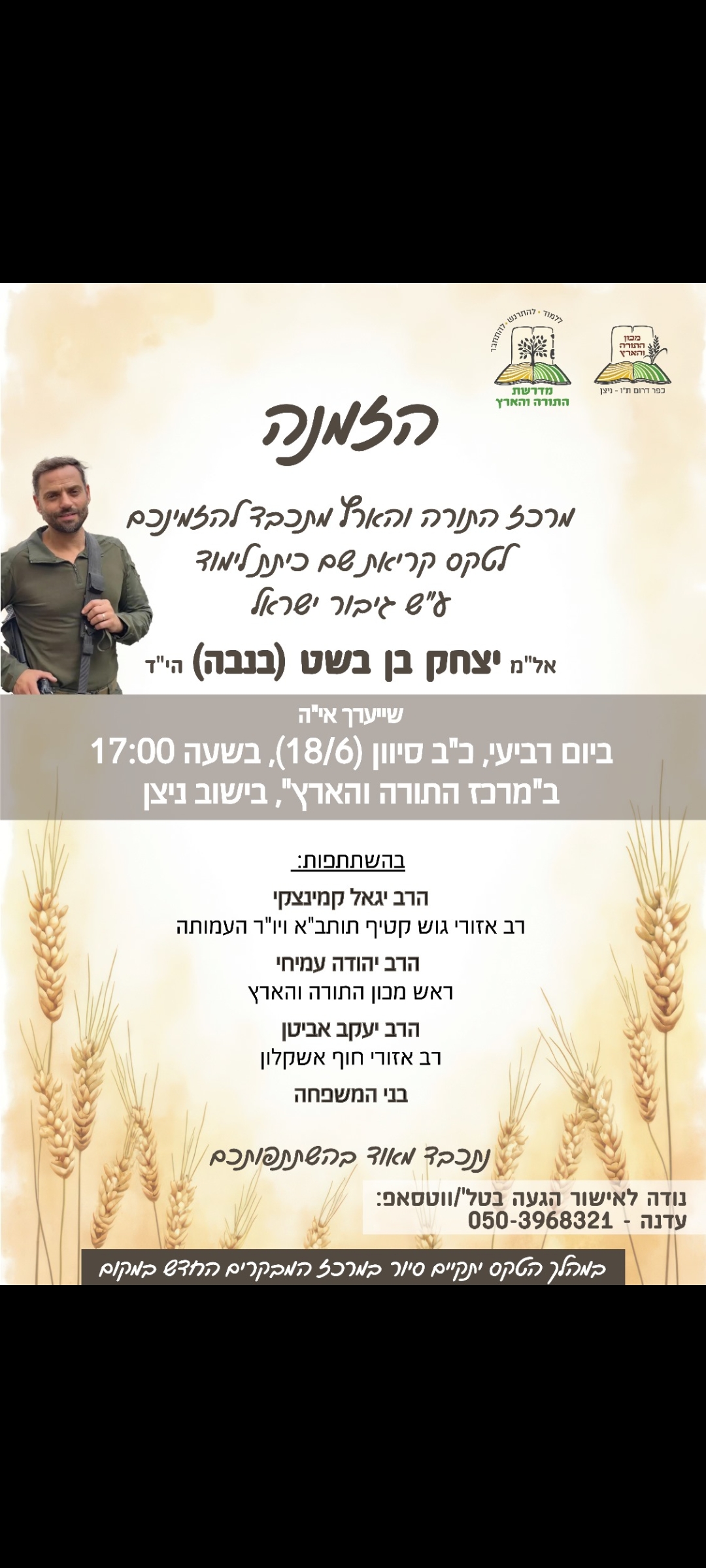 השעורים מוקדשים לעילוי נשמות חללינו יצחק בן עדנה ורפאל, אביב בן נחמה ומעוז, עמר משה בן רעיה ואורן זאב חנוך(ז'אבו) בן הדסה וישראל הי"ד.