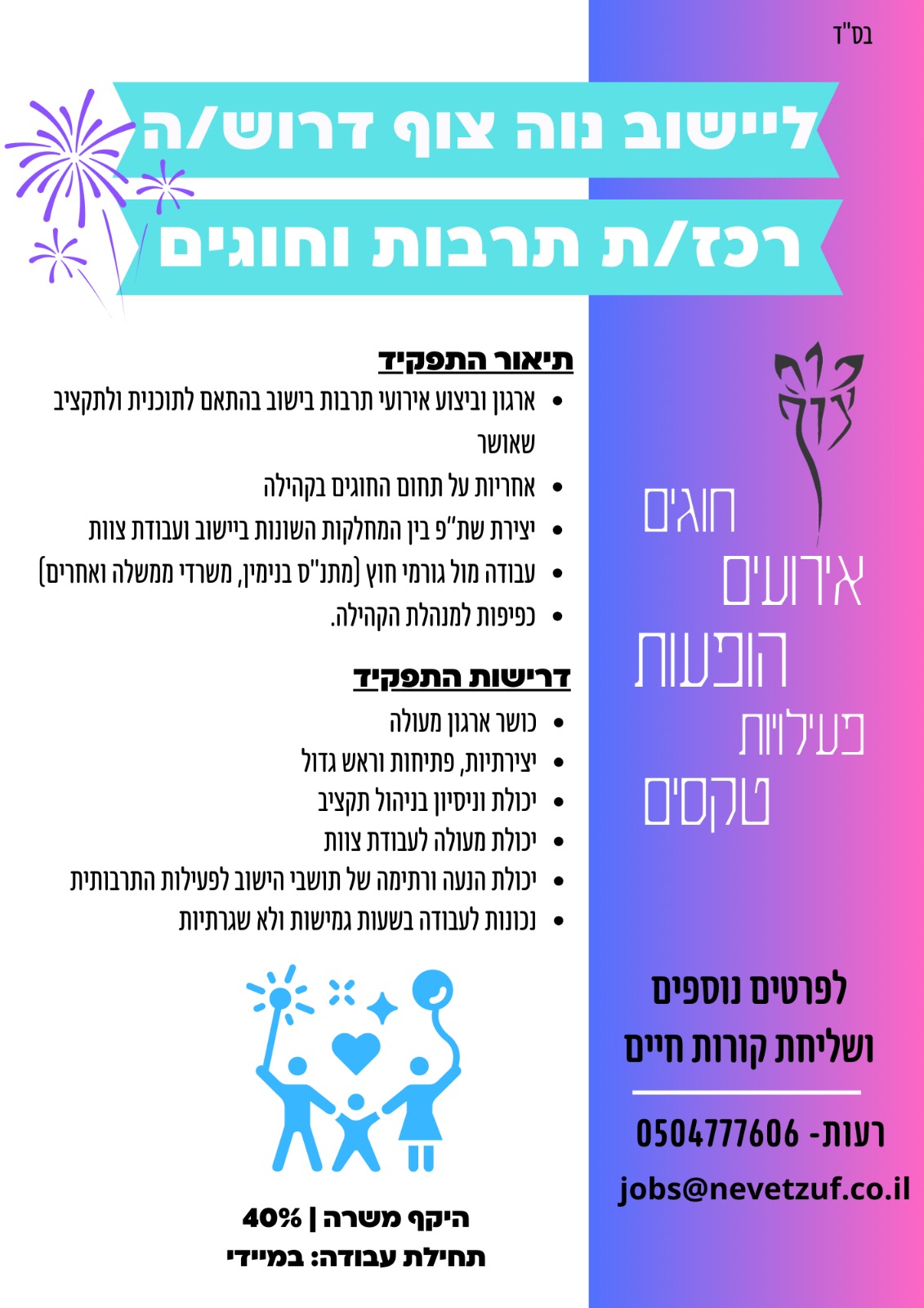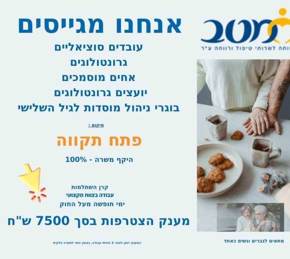 עזרו לנו למצוא את האחד/ אחת ולהביא אותם לצוות חם, אוהב ומסור למשרות הבאות: