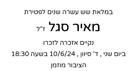 ביום שני, י"א סיון, 17.6.24, בשעה 20.15 במתנסית