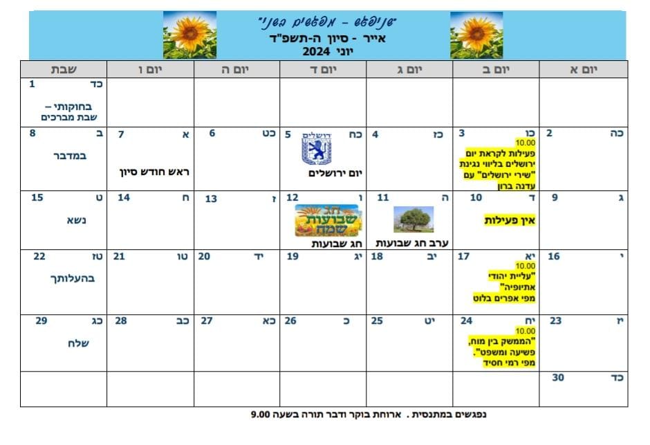 עקבו בלוח יוני המצורף.
