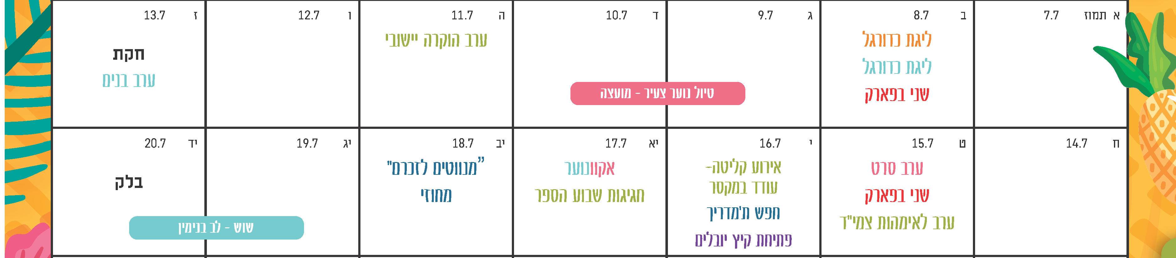 ניסינו ליצור כמה שיותר דברים וודאים ולהנגיש את אירועי הקיץ כמה שיותר.
