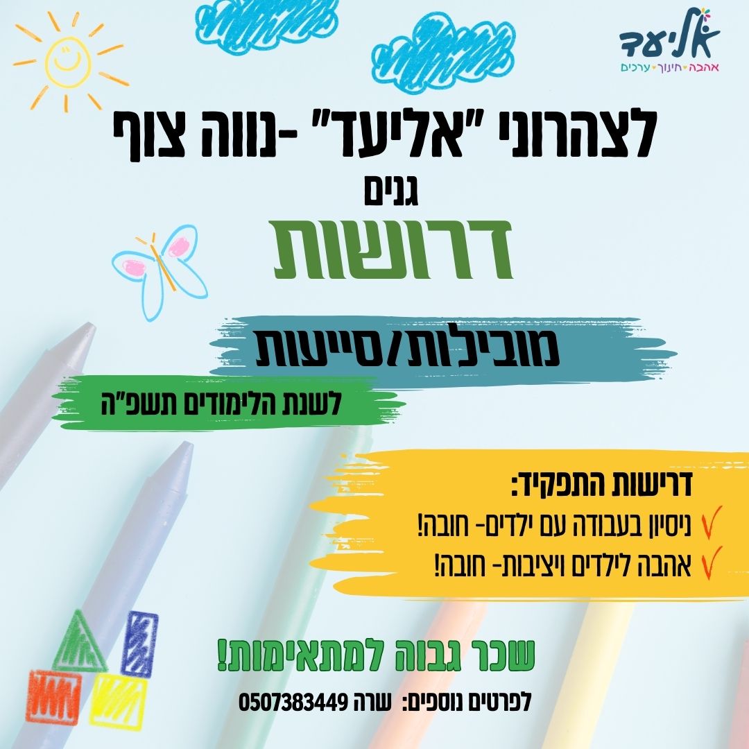 אנחנו זקוקים לעזרתכם במציאת מטפלות למעון, וסייעות לצהרון.