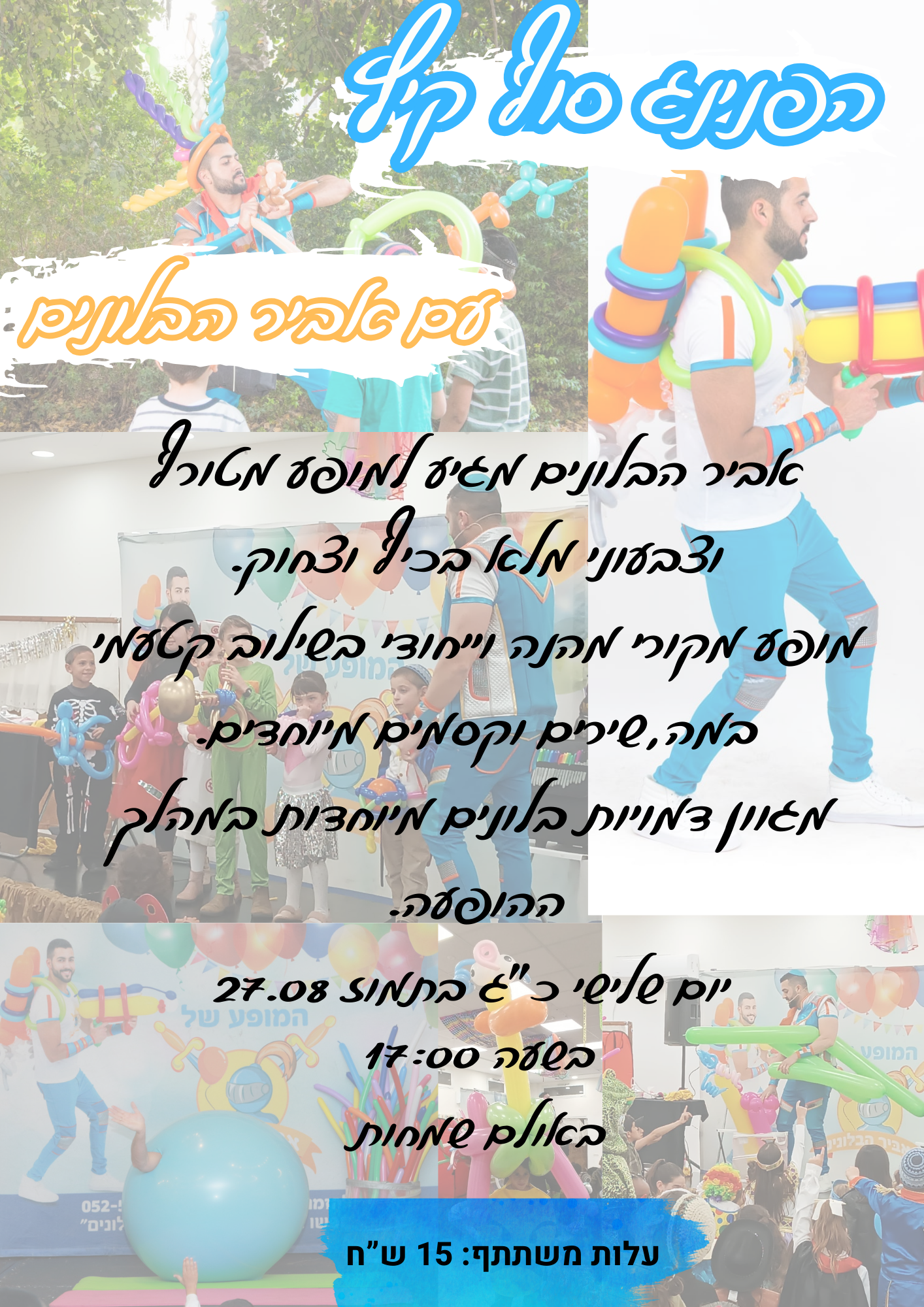 הפנינג סיום הקיץץ! – ביום שלישי כ"ג באב 27/08 ניפגש למופע מטורףףף של אביר הבלונים, מופע סוחף מצחיק ומרתק!