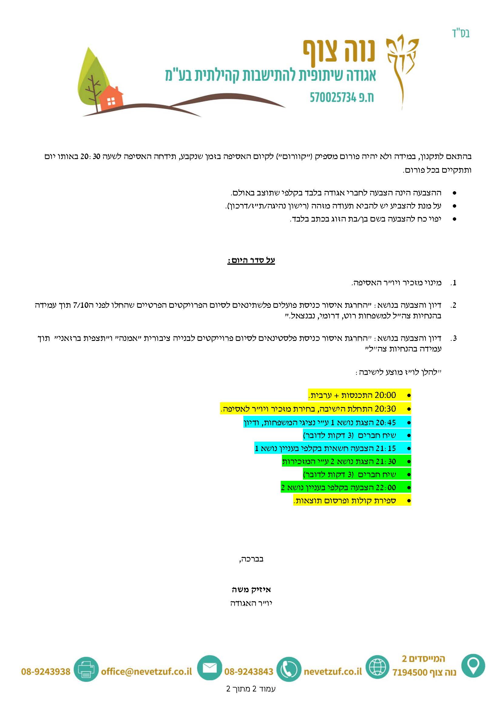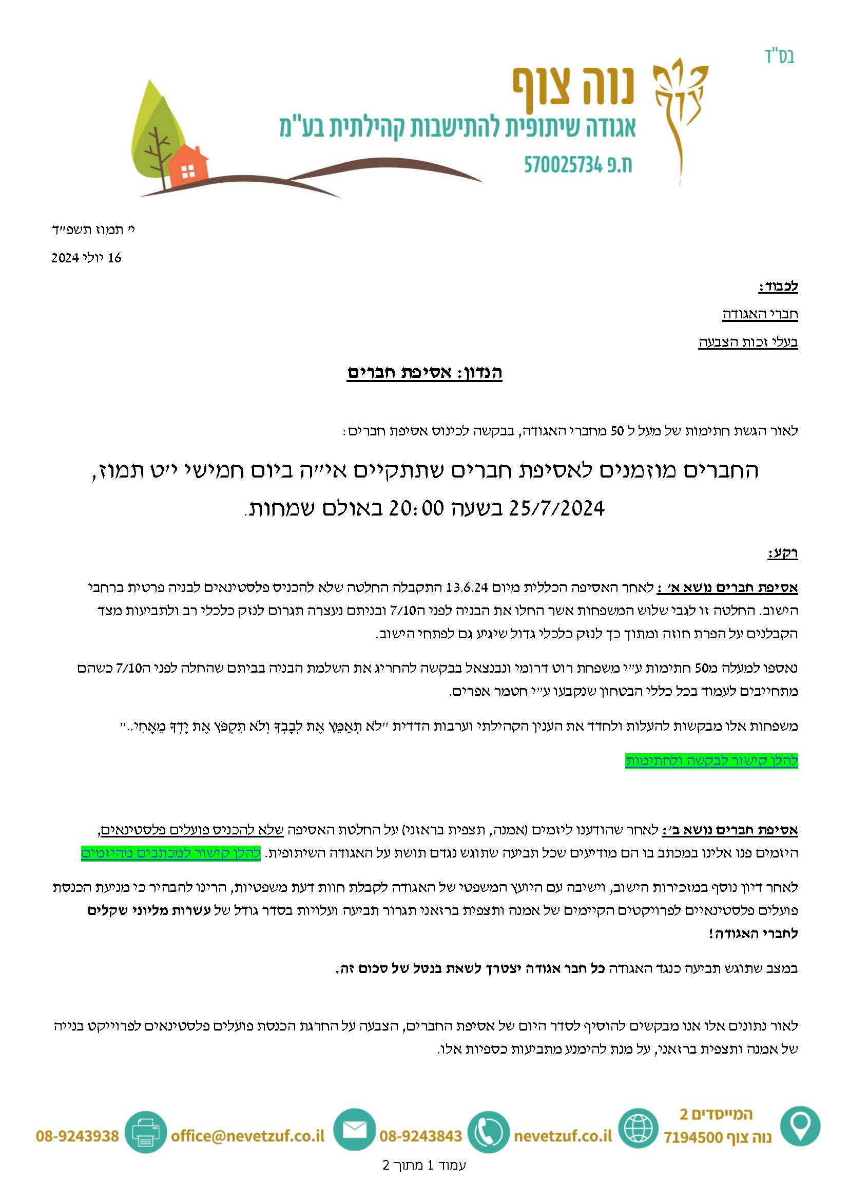 אסיפת חברים – מצורף למידעצוף זה זימון לאסיפה ביום חמישי 25.7.24, ניתן לקרוא אותו כאן