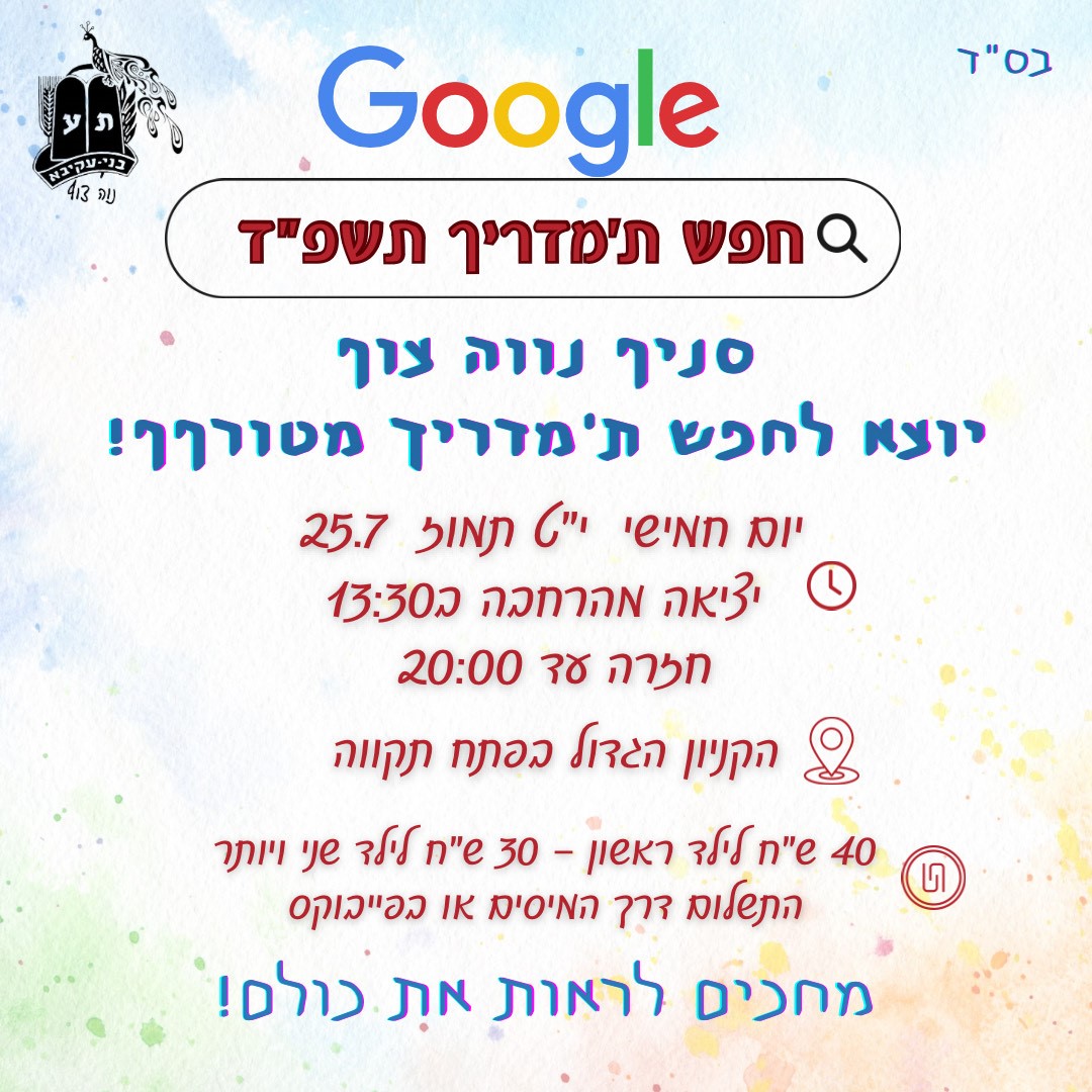 יום שני הקרוב ט״ז בתמוז 22/07 בשעה 17:00. מחכים לראותכם!👫