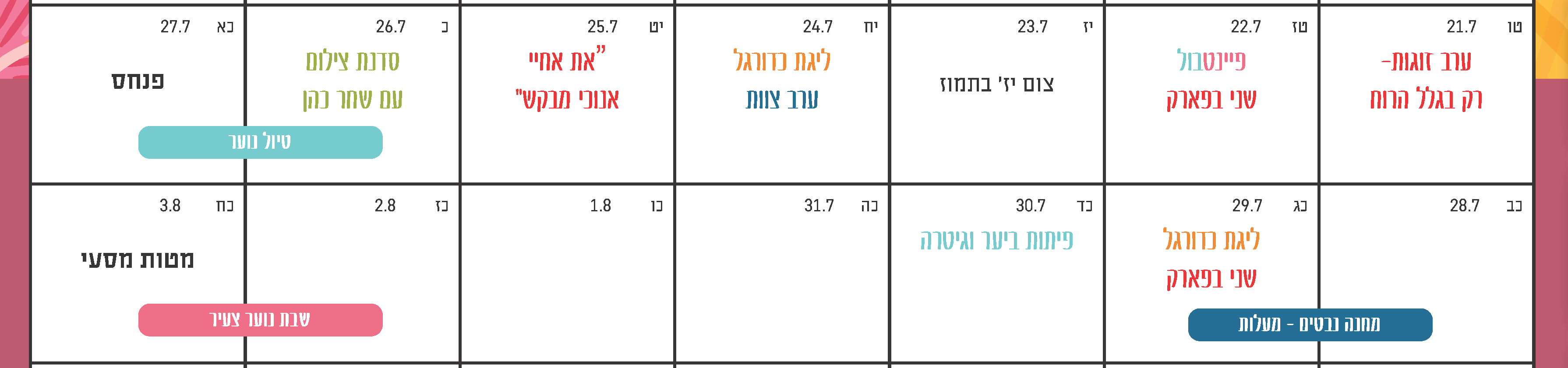 לפנינו קיץ גדוש בפעילויות הן תרבותיות והן קהילתיות. נשמח לראותכם מגיעים ונהנים בפעיליות היישוביות.