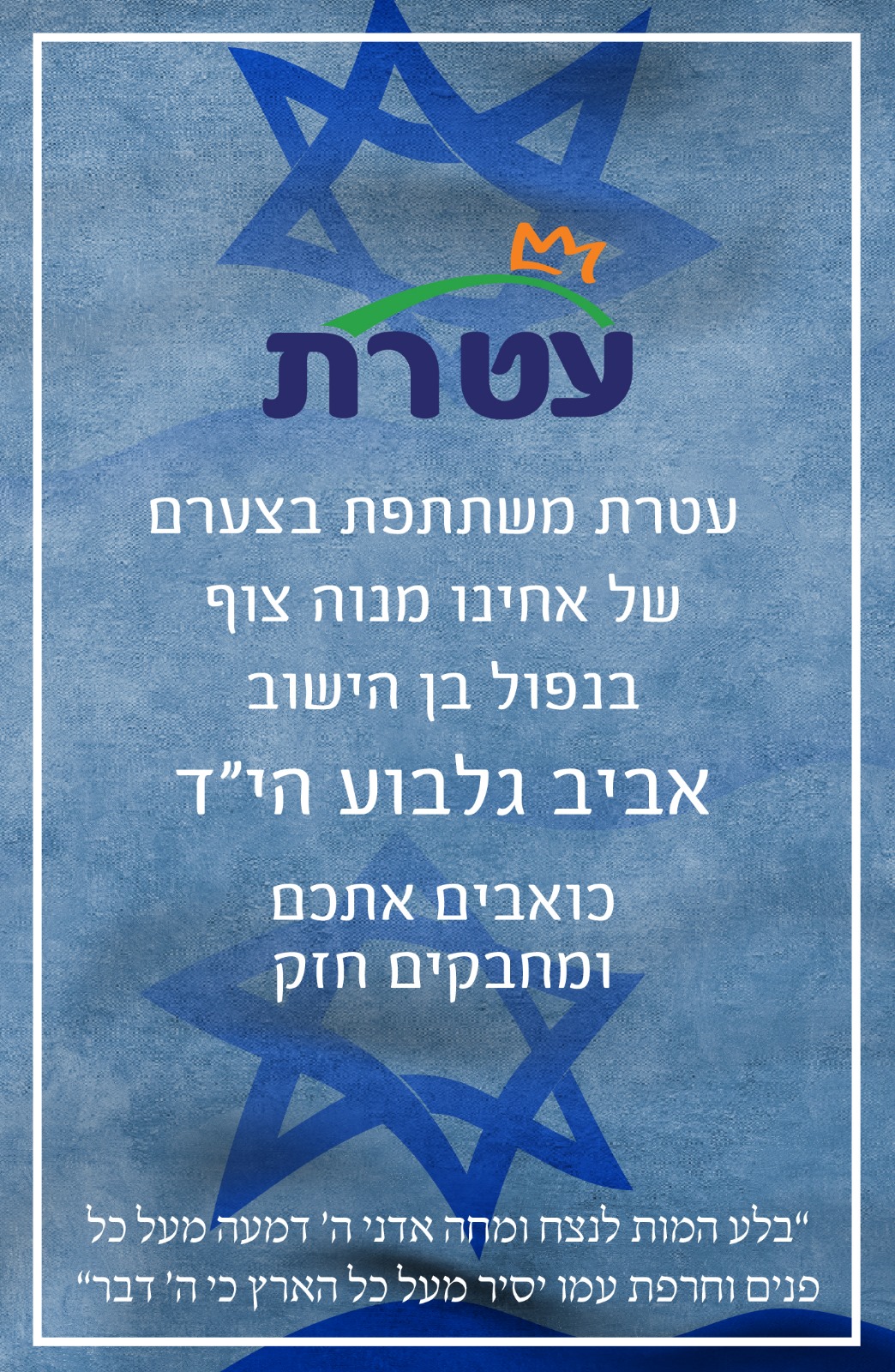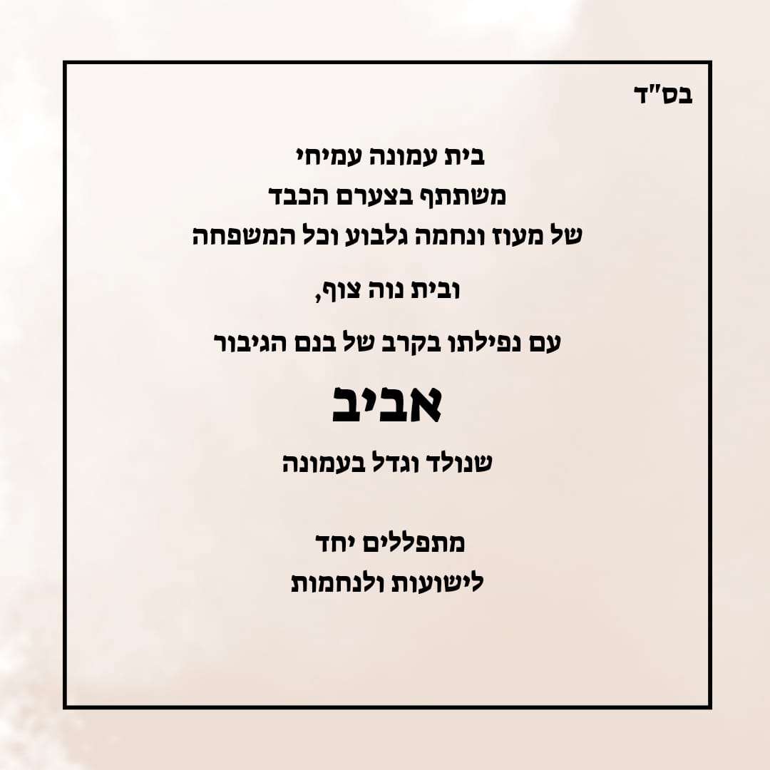תנחומינו המלאים למשפחה! מוזמנים להגיע לנחם וכך נחבק את המשפחה כקהילה.