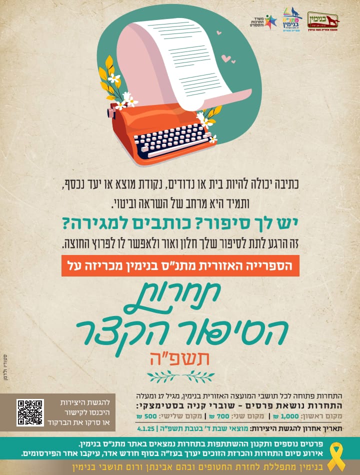 📚 התחרות פתוחה לתושבי בנימין מגיל 17 ומעלה. לפרטים נוספים, תקנון התחרות ולהגשת הסיפורים, הכנסו לקישור. מחכות לסיפור שלכם🖊️ הספרייה האזורית מתנ"ס בנימין