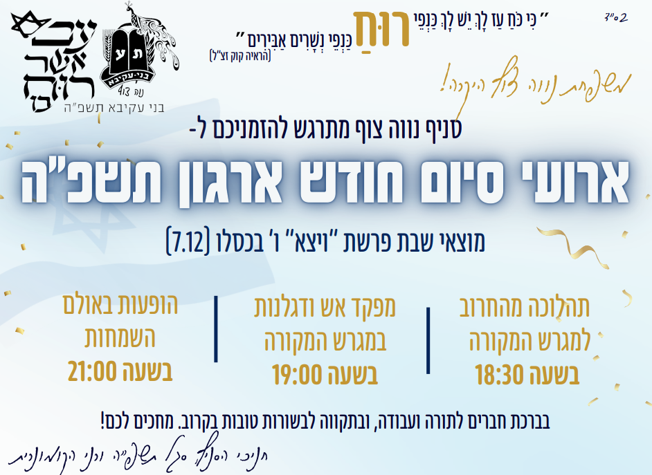 גאים בכם מאוד על העשייה וההתמסרות לכל אורך החודש!! שבת שלום, סגל תשפ"ה ורני הקומונרית