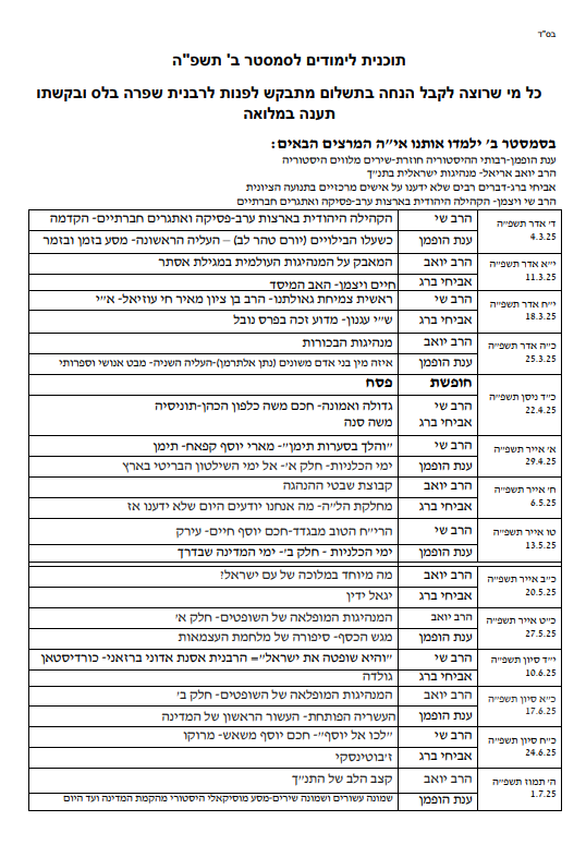 שימו לב- בסוף המידעצוף מפורסמת תוכנית לסמסטר הבא.
