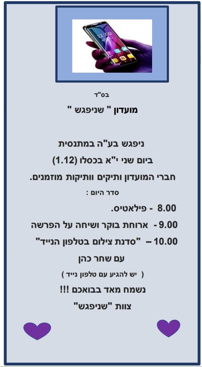 עדכונים ממועדון "שניפגש":